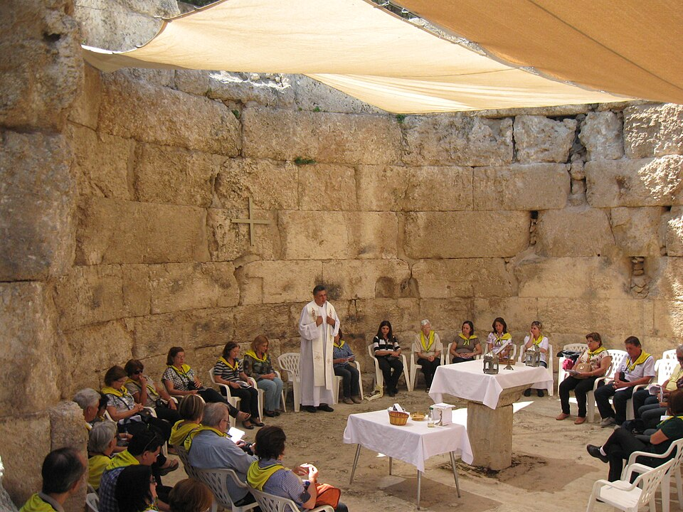 Image 5 – Emmaus Nicopolis (Latrun) - A ceremony inside the Crusader church. Source: Ori~, Attribution, via Wikimedia Commons. https://commons.wikimedia.org/w/index.php?curid=19375023